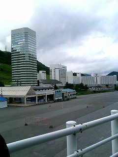 数十分のドライヴの果て、ついに苗場プリンスホテルやキャンプサイトが見えてきました。この時点でテンション上がりまくりマクリスティ。