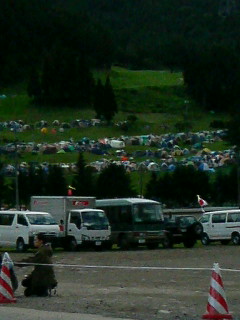 苗プリ前の駐車場にはフジロッカーズがガンガン到着してきており、